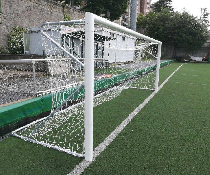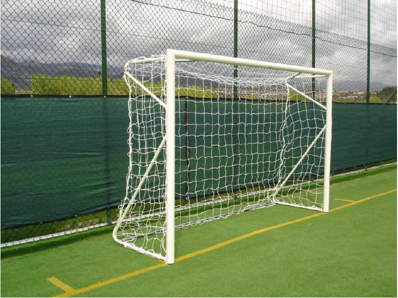 € 1180 /SET 2 buc Prețul afisat nu conține TVA și transport POARTĂ DE FOTBAL 5 x 2 m + PLASE Domeniu de utilizare: Fotbal Dimensiuni 5,00×2,00×1,00m. Structura: Cadru din profile ovale de aluminiu Ø120x100mm Finisaj: vopsite alb Accesorii: Carlige de prindere; plase din fir 6 mm din polipropilena HD rezistenta la umiditate si razele solare, fara nod, cu ochiuri 12×12 cm si intaritura pe margini. Fișa tehnică Normele europene de calitate si de siguranta UEFA. Garanție: 2 ani